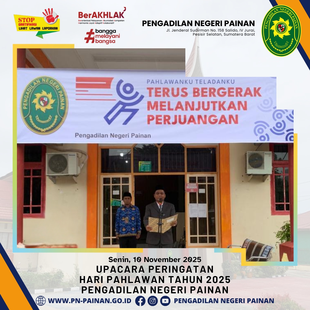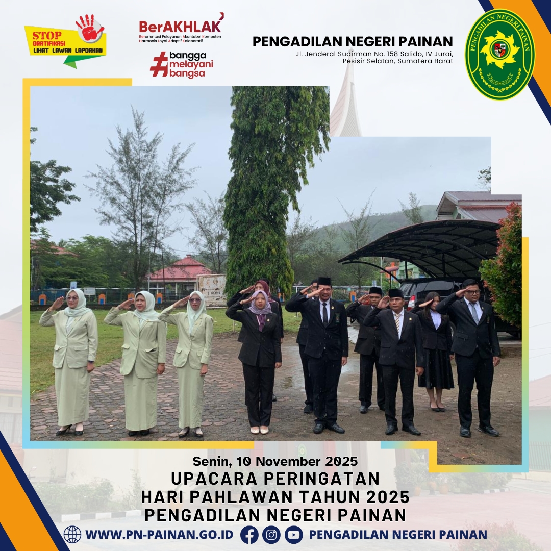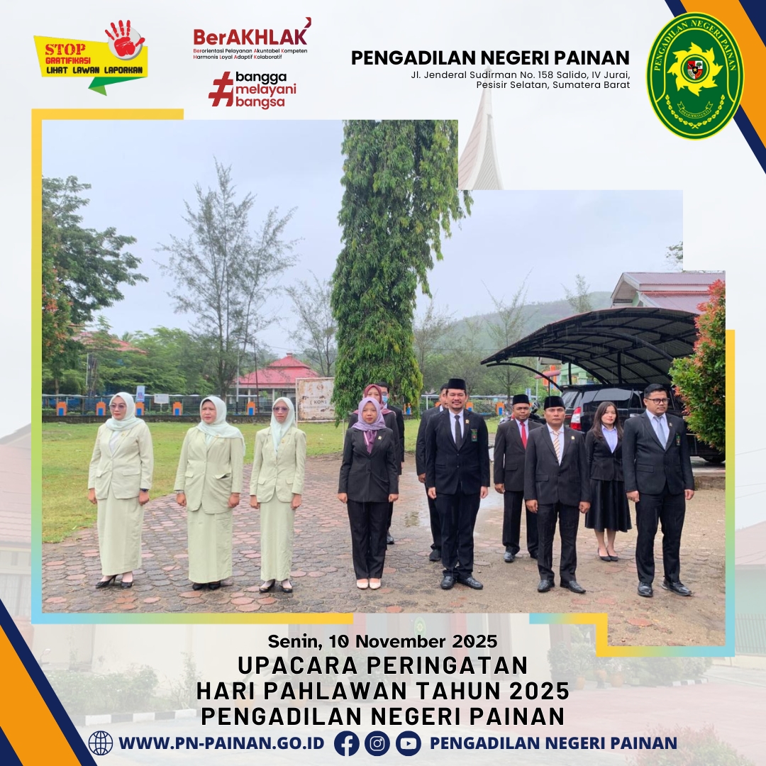 Pengadilan Negeri Painan melaksanakan Upacara Peringatan Hari Pahlawan Tahun 2025 yang berlangsung dengan khidmat di halaman kantor Pengadilan Negeri Painan.