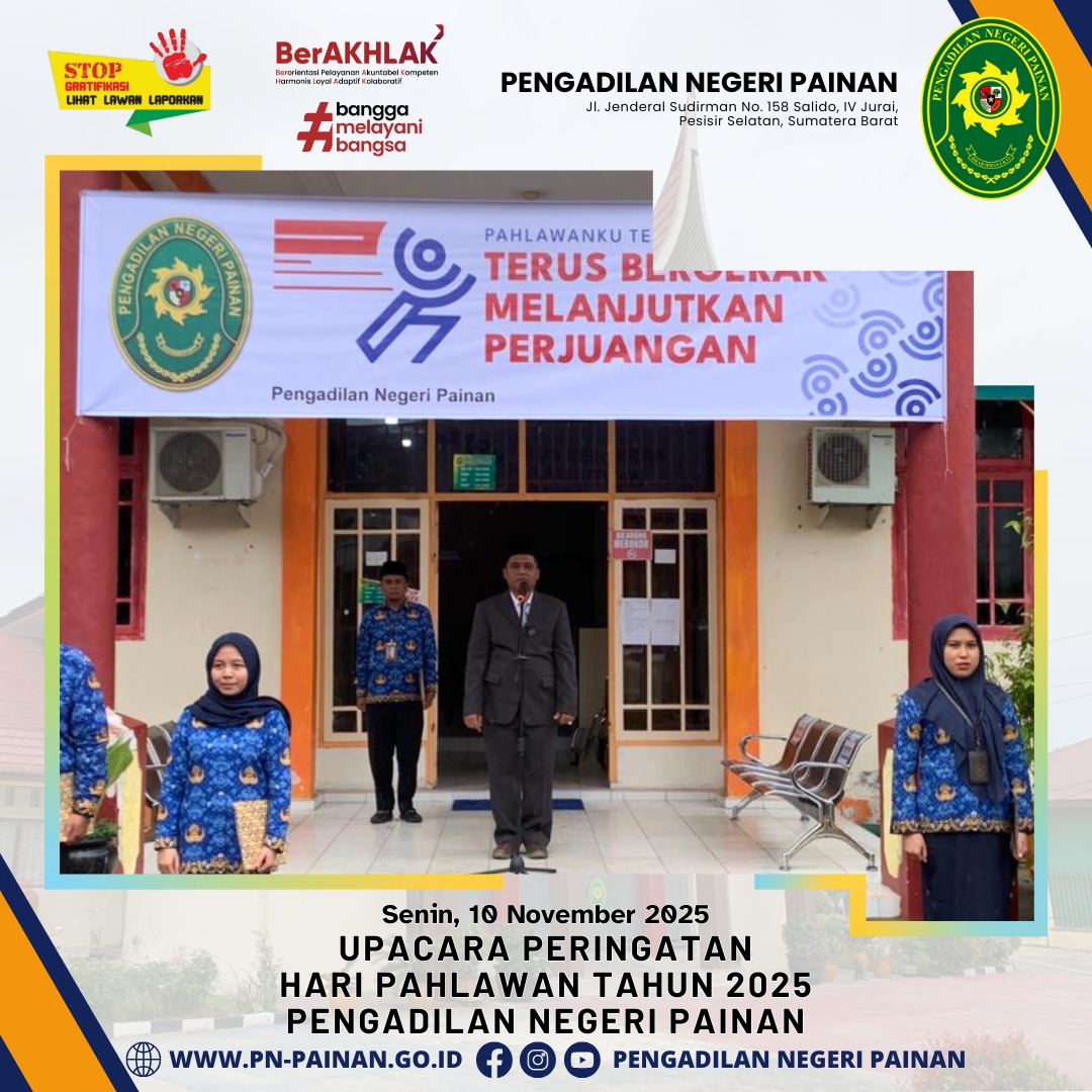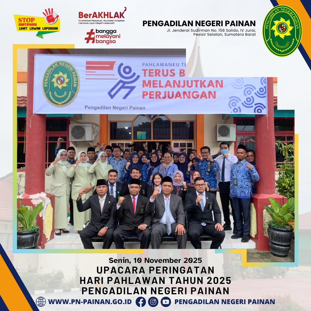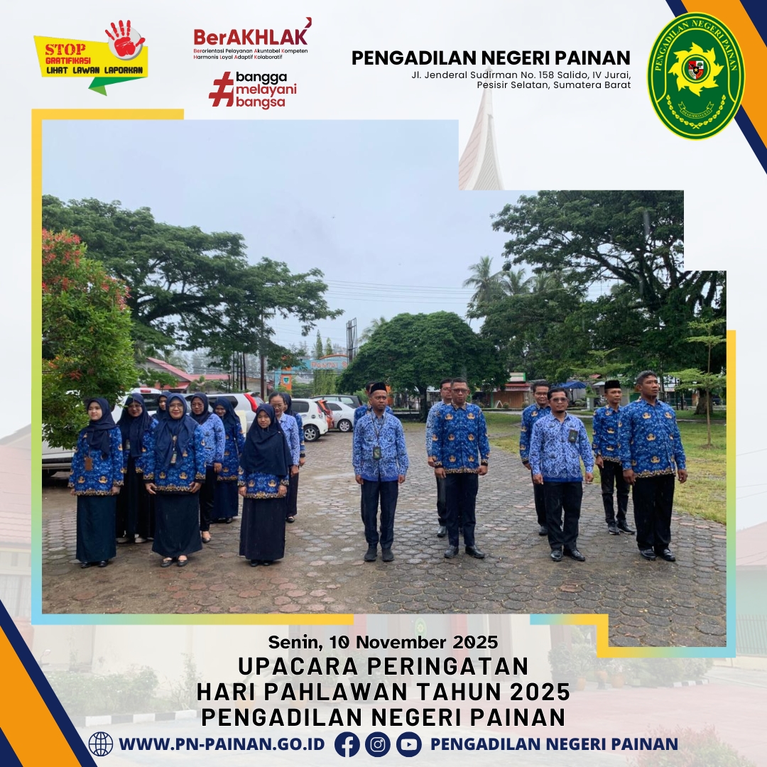 Pengadilan Negeri Painan melaksanakan Upacara Peringatan Hari Pahlawan Tahun 2025 yang berlangsung dengan khidmat di halaman kantor Pengadilan Negeri Painan.