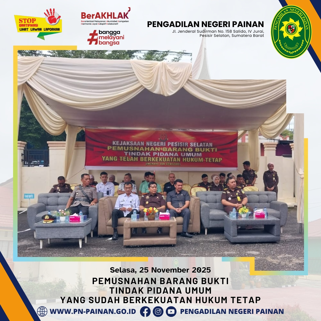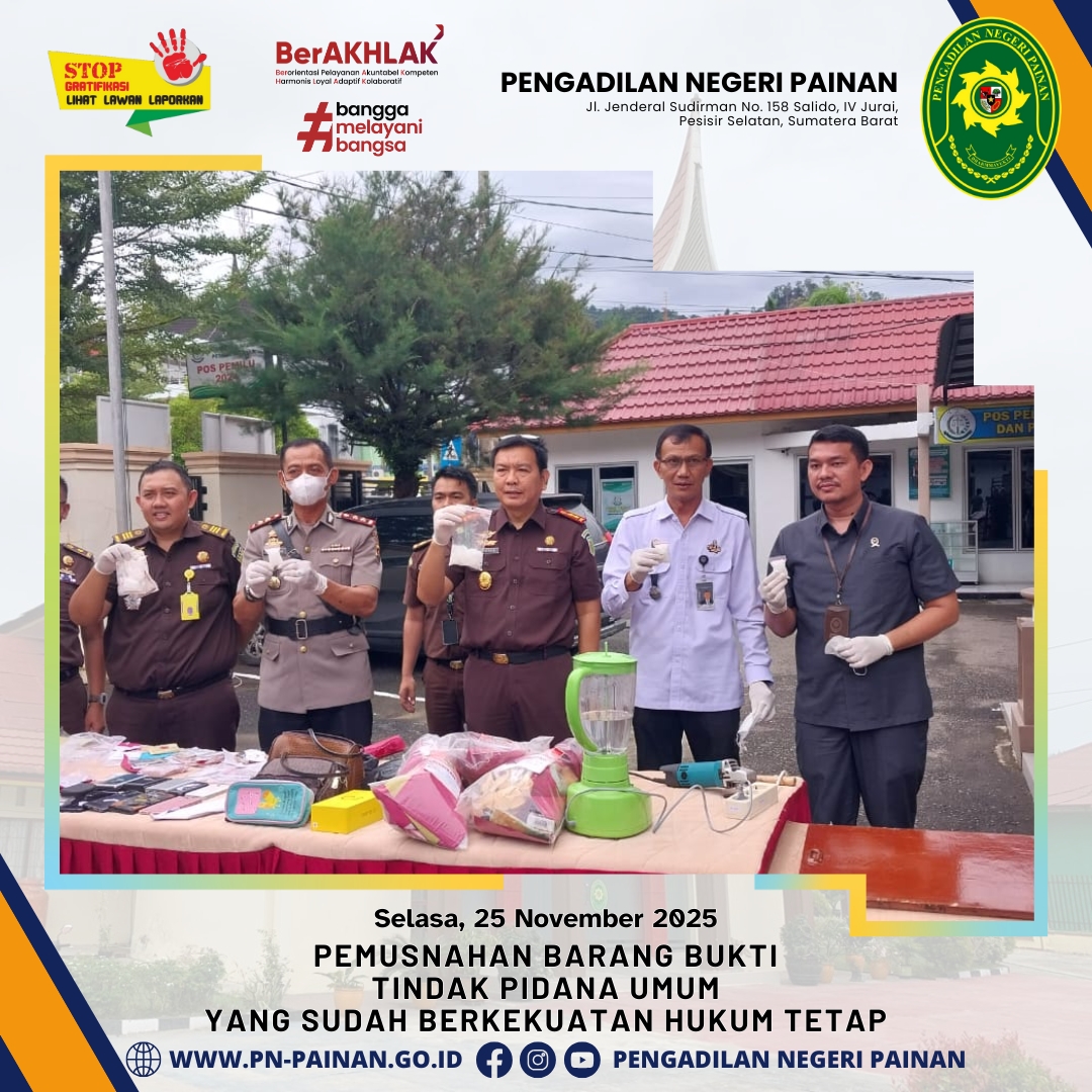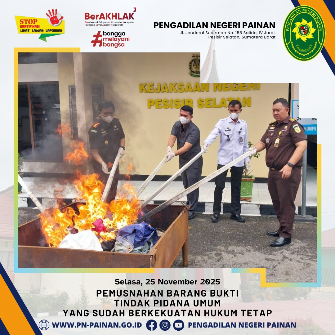 Hakim Pengadilan Negeri Painan, Bapak Syah Putra Sibagariang, S.H., mewakili pimpinan menghadiri kegiatan Pemusnahan Barang Bukti Tindak Pidana Umum yang telah berkekuatan hukum tetap (inkracht van gewijsde).