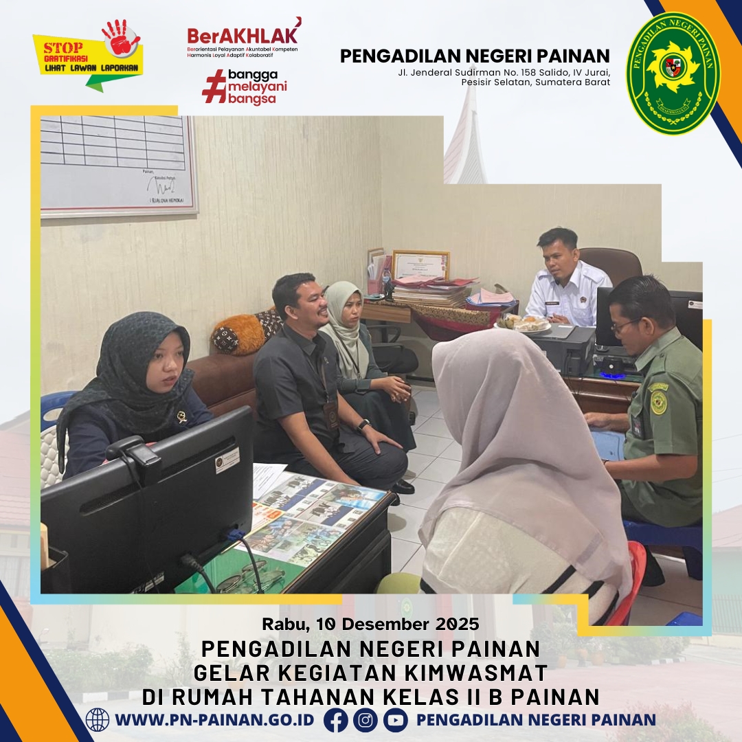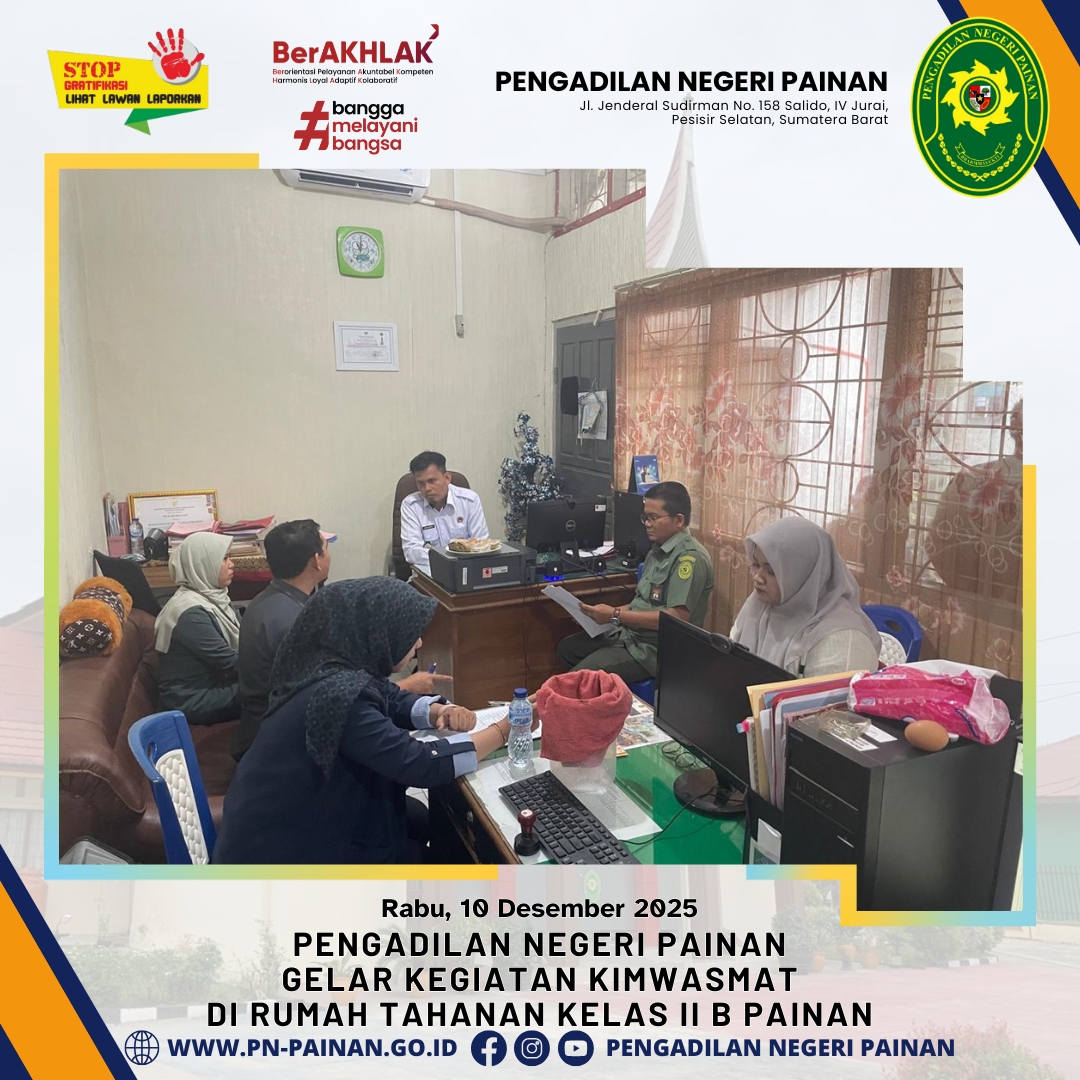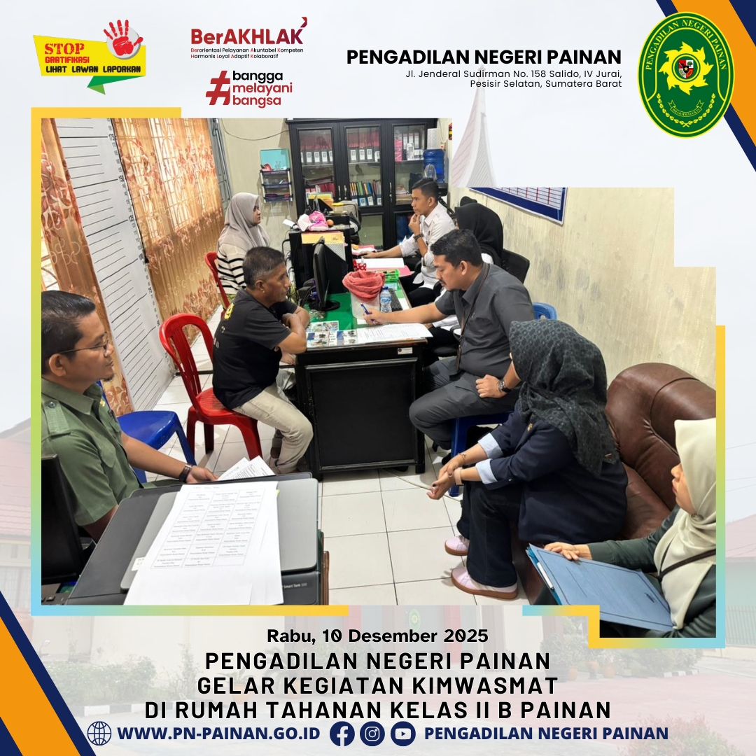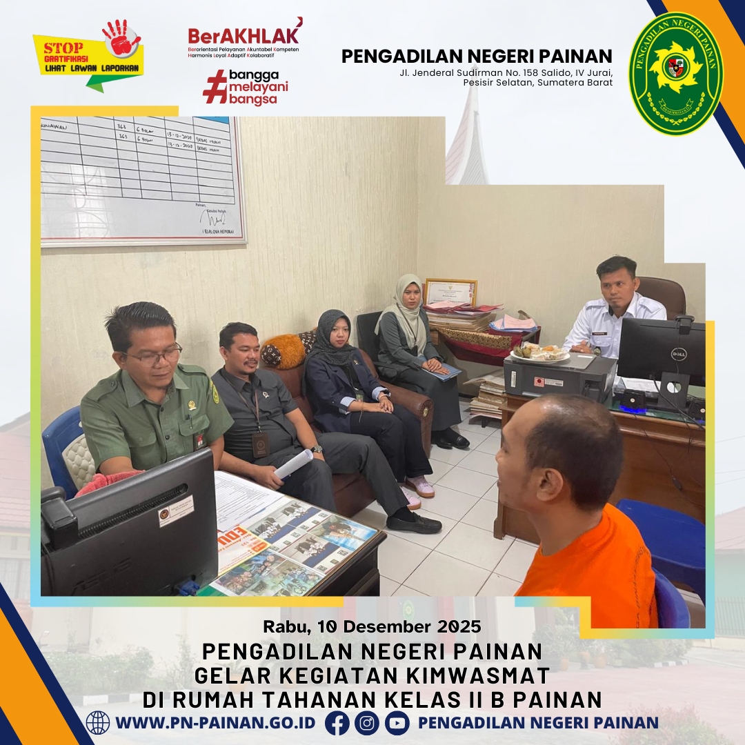 Dalam rangka menjalankan fungsi pengawasan dan pembinaan, Pengadilan Negeri Painan melaksanakan kegiatan KIMWASMAT di Rumah Tahanan Negara Kelas II B Painan.