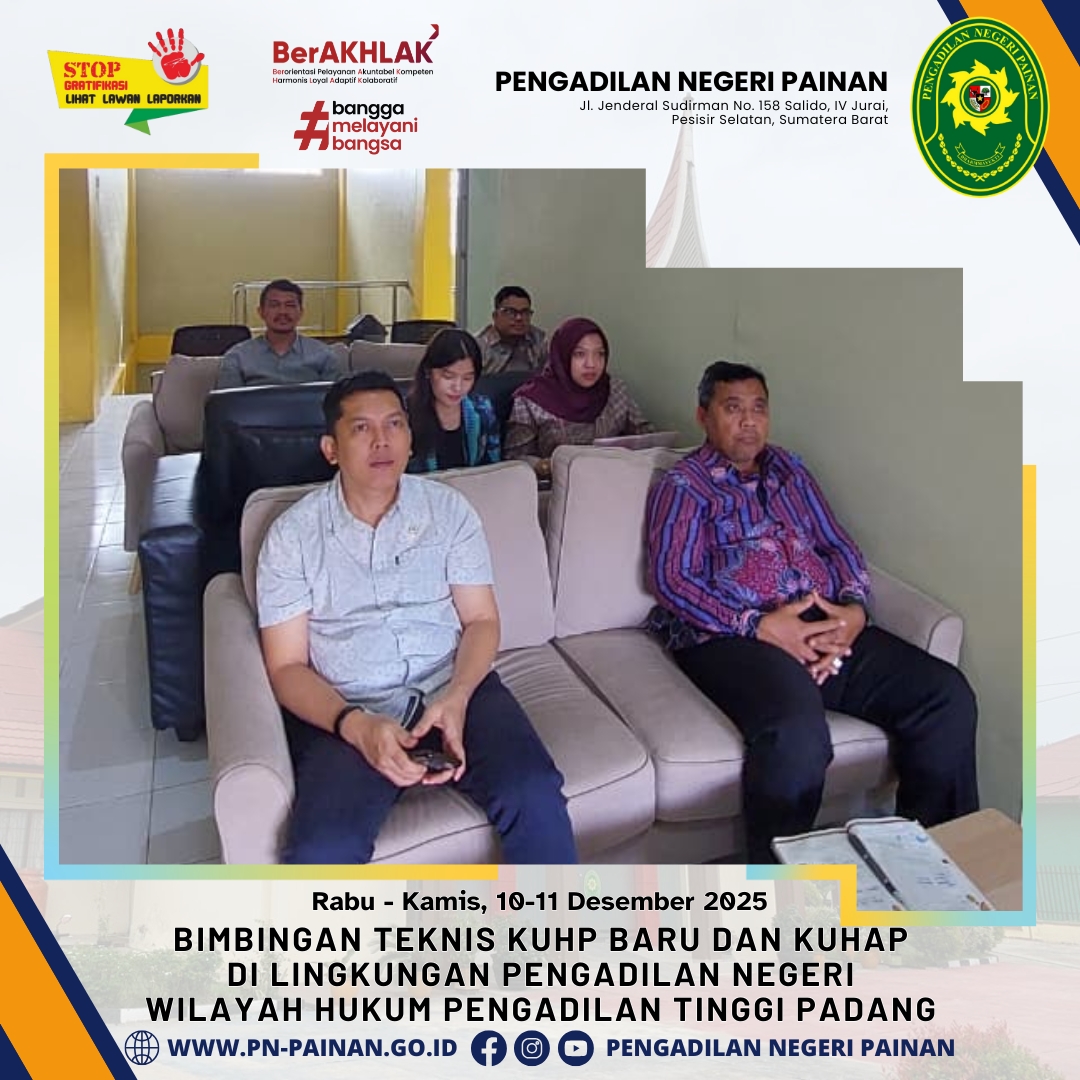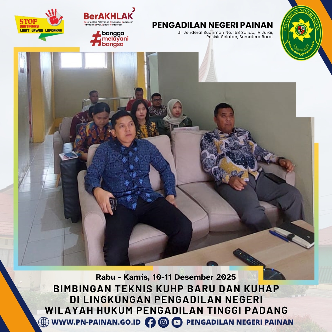 Pengadilan Negeri Painan turut berpartisipasi aktif dalam kegiatan penting "Bimbingan Teknis KUHP Baru dan KUHAP di Lingkungan Pengadilan Negeri Wilayah Hukum Pengadilan Tinggi Padang".