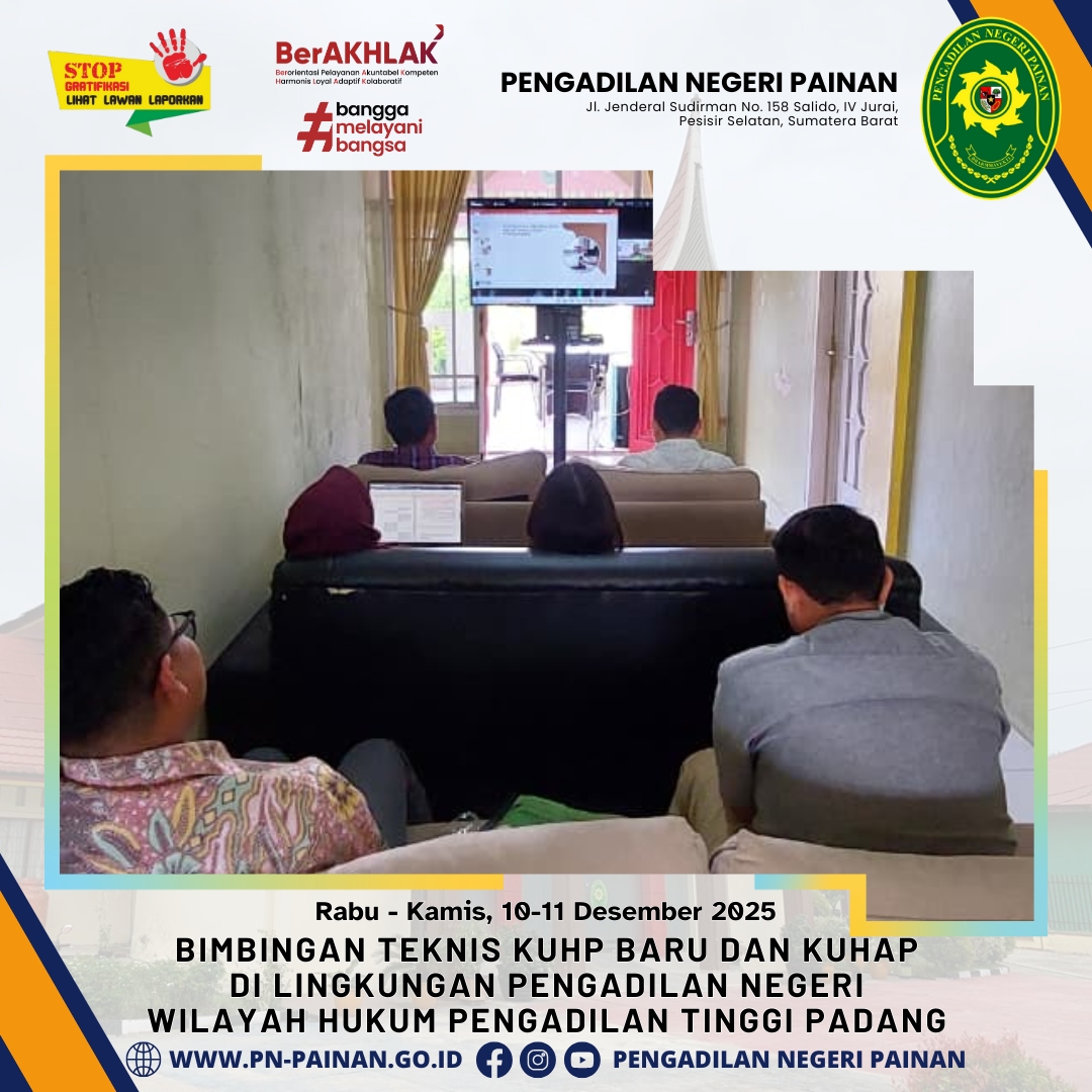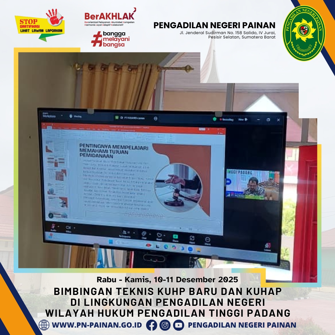 Keikutsertaan dalam kegiatan ini merupakan wujud komitmen Pengadilan Negeri Painan untuk terus meningkatkan pemahaman dan kompetensi dalam menerapkan Kitab Undang-Undang Hukum Pidana (KUHP) yang baru, guna memastikan pelaksanaan tugas peradilan yang lebih berkualitas dan sesuai dengan perkembangan hukum terkini.