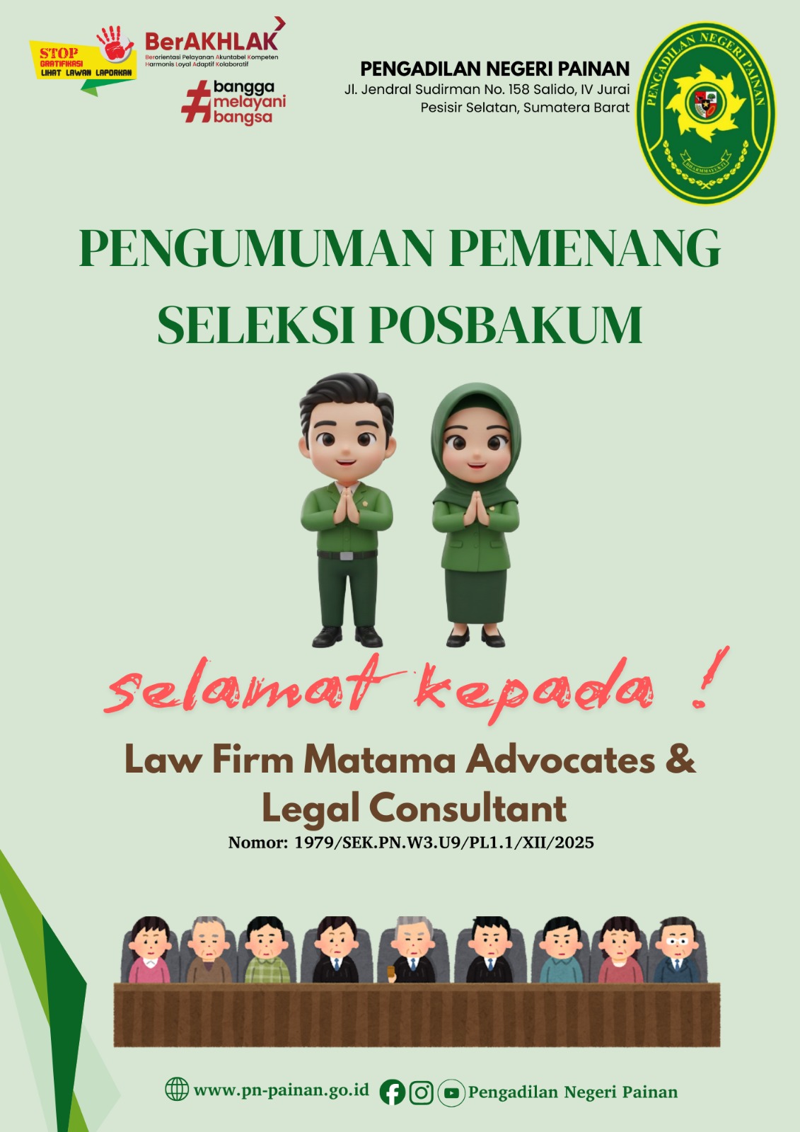 Selamat kepada pemenang! Semoga dapat menjalankan amanah dengan integritas tinggi dan memberikan pelayanan hukum terbaik bagi masyarakat pencari keadilan di wilayah Pesisir Selatan. ⚖️🤝