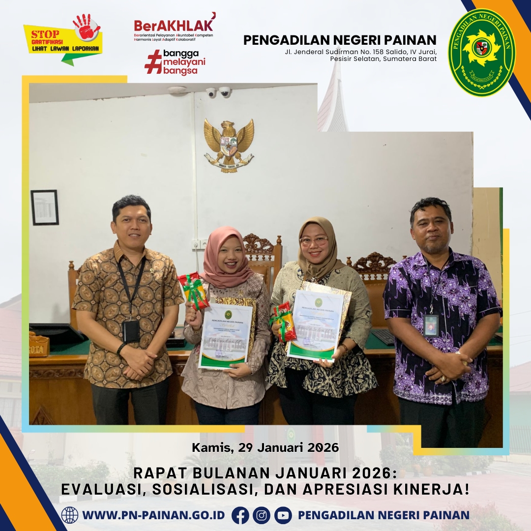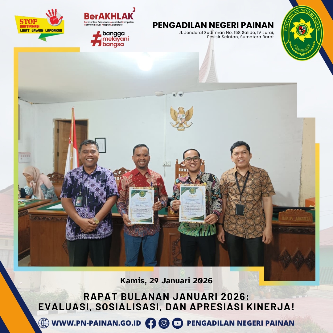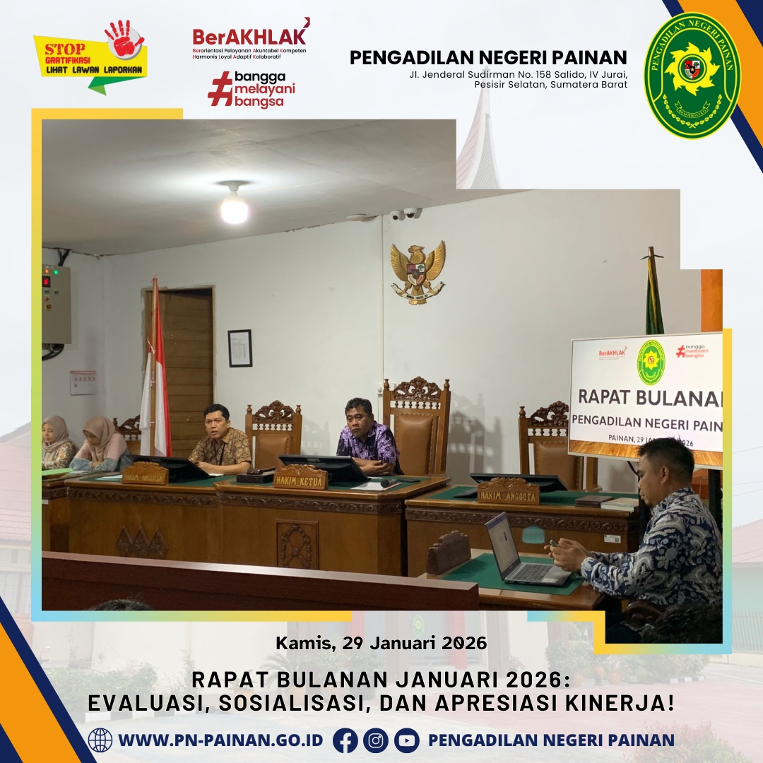 Pengadilan Negeri Painan melaksanakan Rapat Bulanan Bulan Januari 2026. Kegiatan ini menjadi langkah awal untuk menyamakan persepsi dan semangat di tahun yang baru.