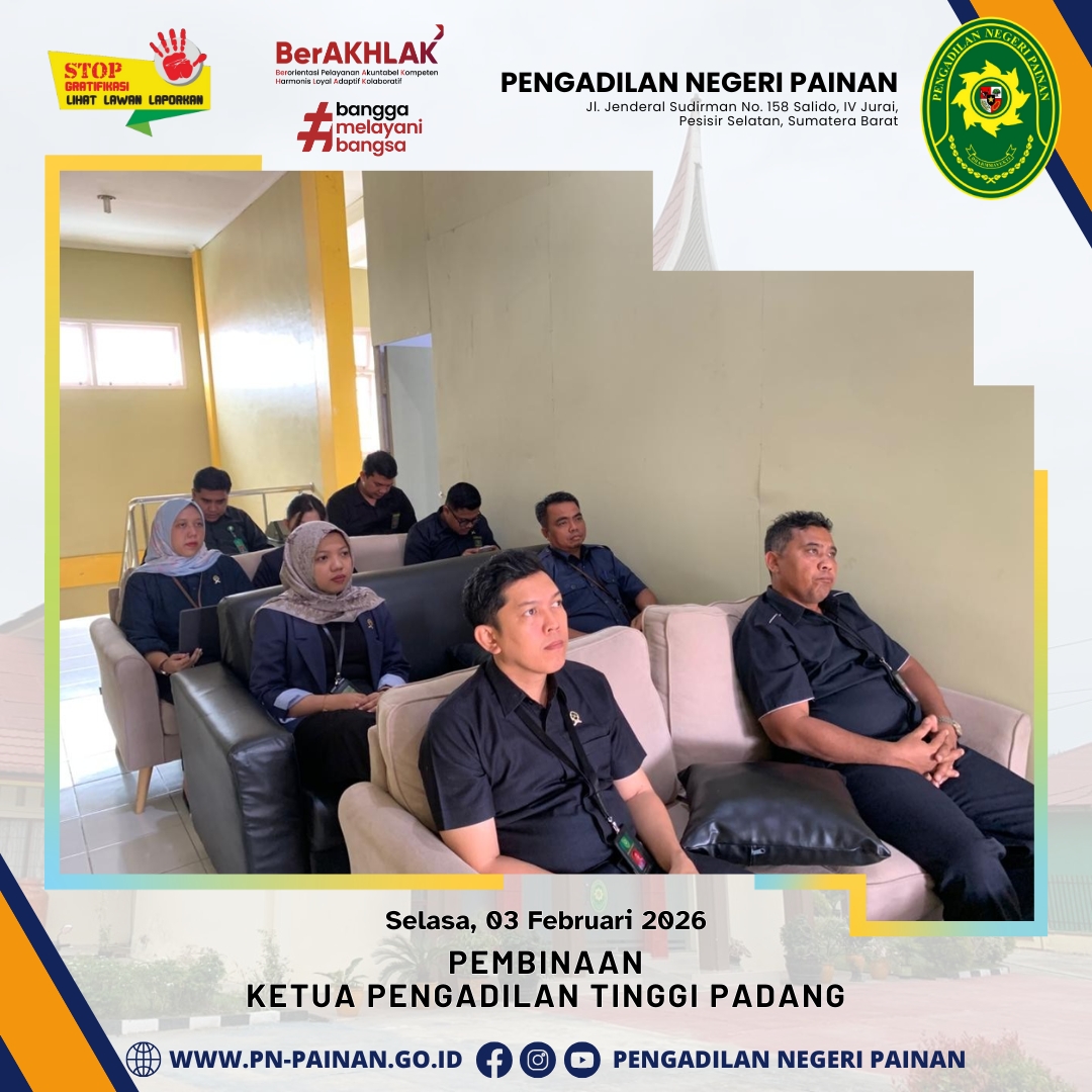 Seluruh jajaran Pengadilan Negeri Painan mengikuti jalannya pembinaan dengan penuh antusias dan komitmen tinggi. Kegiatan ini diharapkan dapat menjadi stimulan bagi seluruh aparatur PN Painan untuk terus berinovasi dan memberikan pelayanan prima yang transparan serta akuntabel.