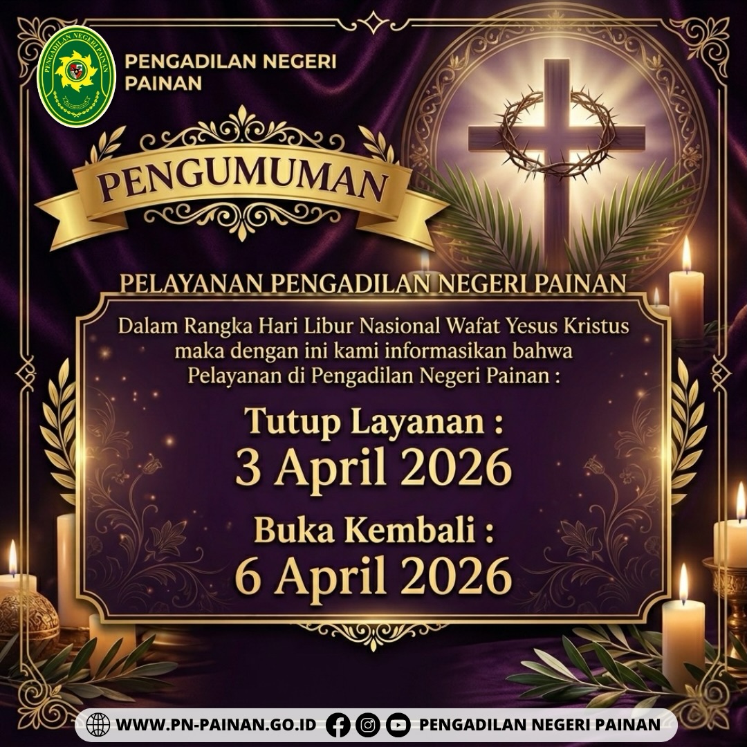 PENGUMUMAN PELAYANAN PENGADILAN NEGERI PAINAN Dalam Rangka Hari Libur Nasional Wafat Yesus Kristus