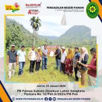 Jumat (23/01/2026) – Pengadilan Negeri (PN) Painan berhasil melaksanakan eksekusi putusan perkara perdata Nomor 12/Pdt.G/2024/PN Pnn yang telah berkekuatan hukum