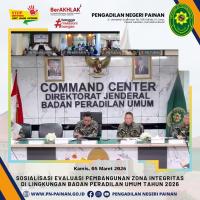 Kamis, 5 Maret 2026 Pengadilan Negeri Painan mengikuti kegiatan Sosialisasi Evaluasi Pembangunan Zona Integritas menuju predikat Wilayah Bebas dari Korupsi (WBK) dan
