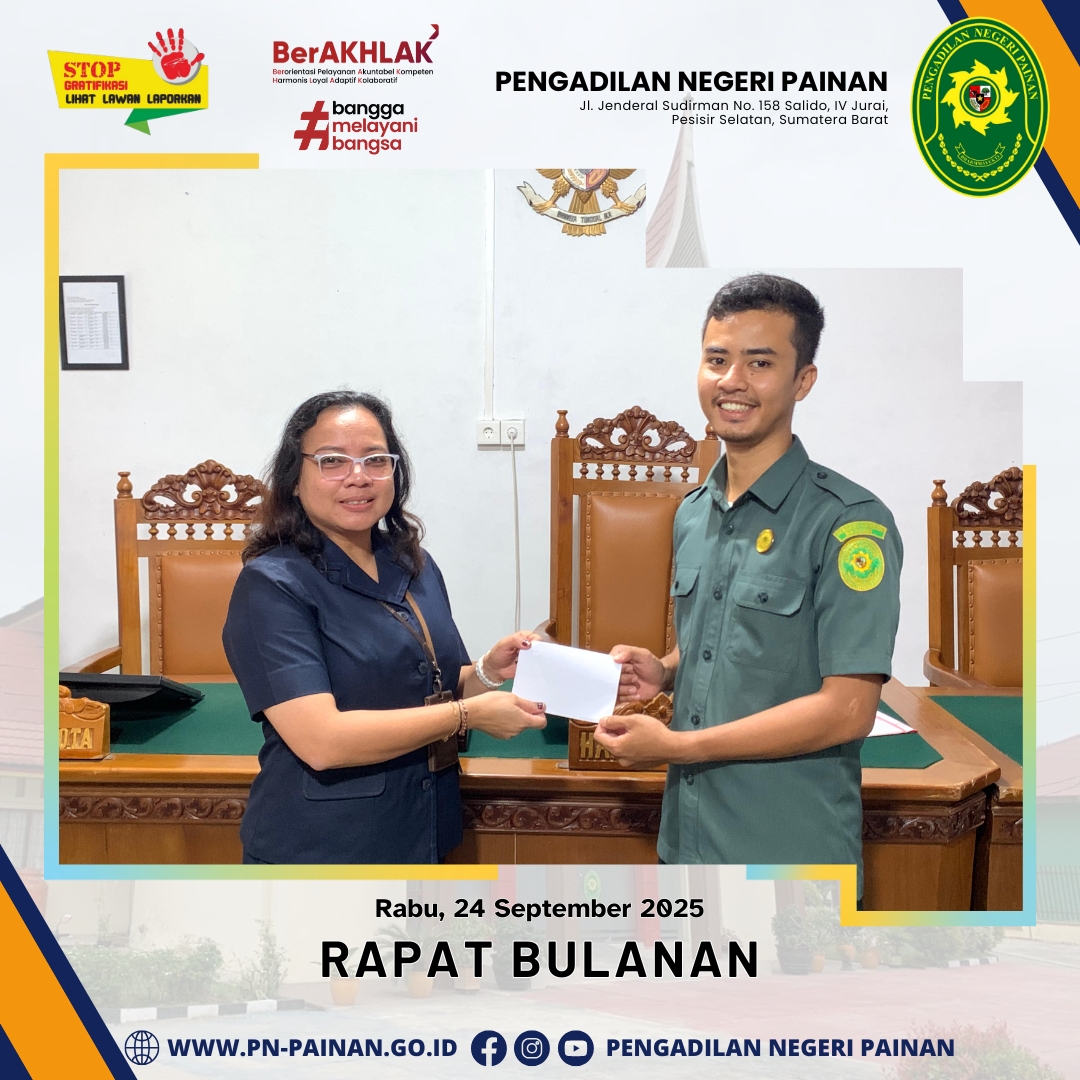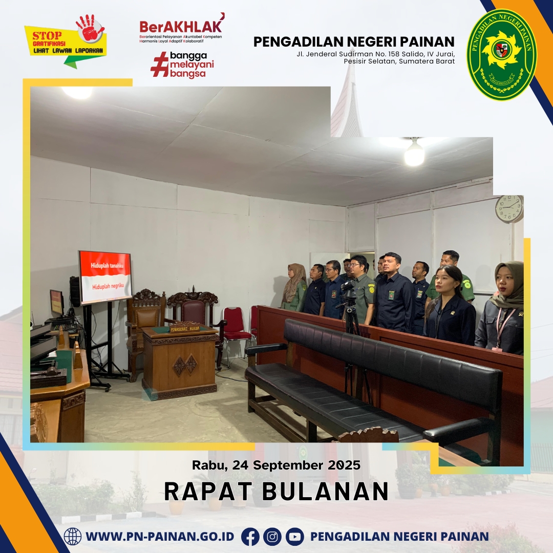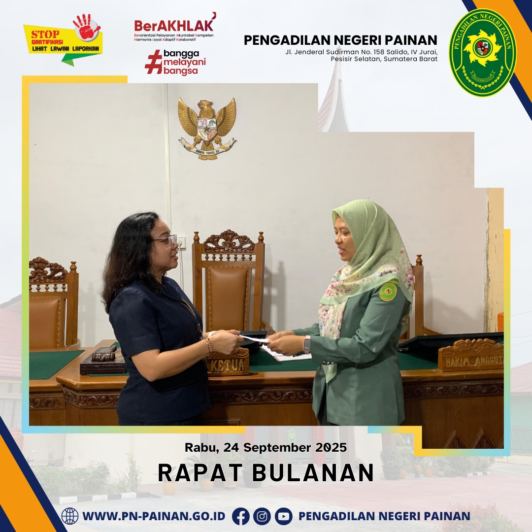 Bertempat di Ruang Sidang Utama Pengadilan Negeri Painan, telah dilaksanakan Rapat Bulan September 2025.