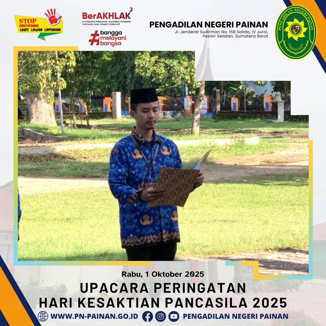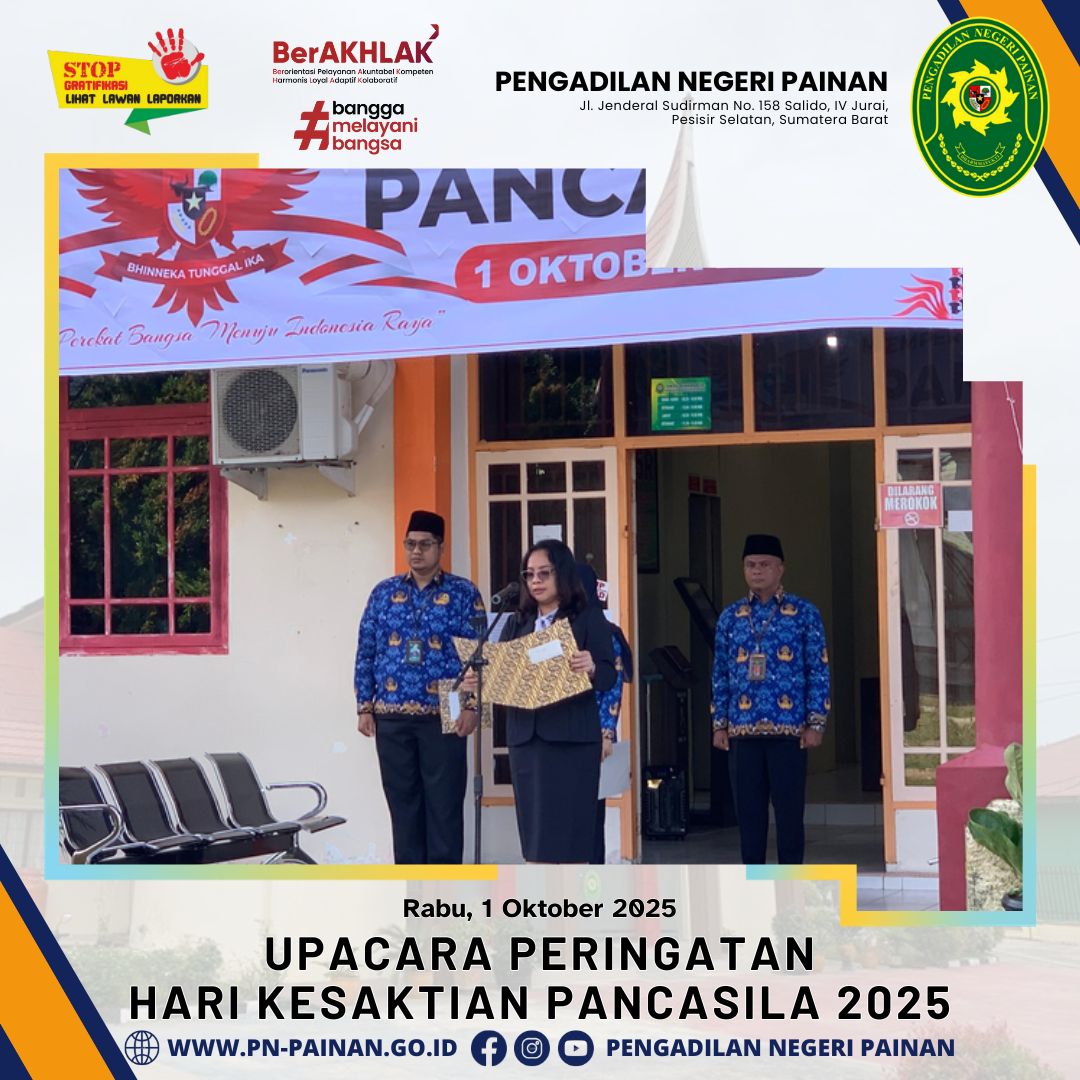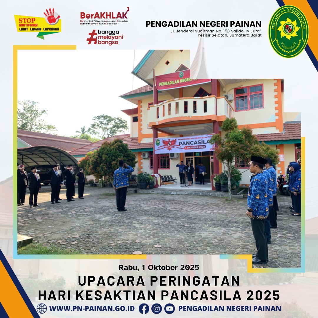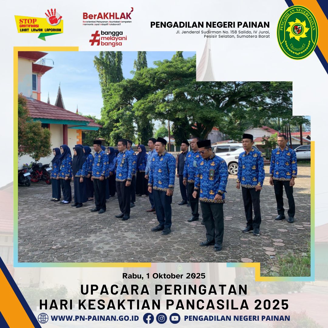 Pengadilan Negeri Painan melaksanakan Upacara Peringatan Hari Kesaktian Pancasila 2025 yang berlangsung dengan khidmat di halaman kantor Pengadilan Negeri Painan.